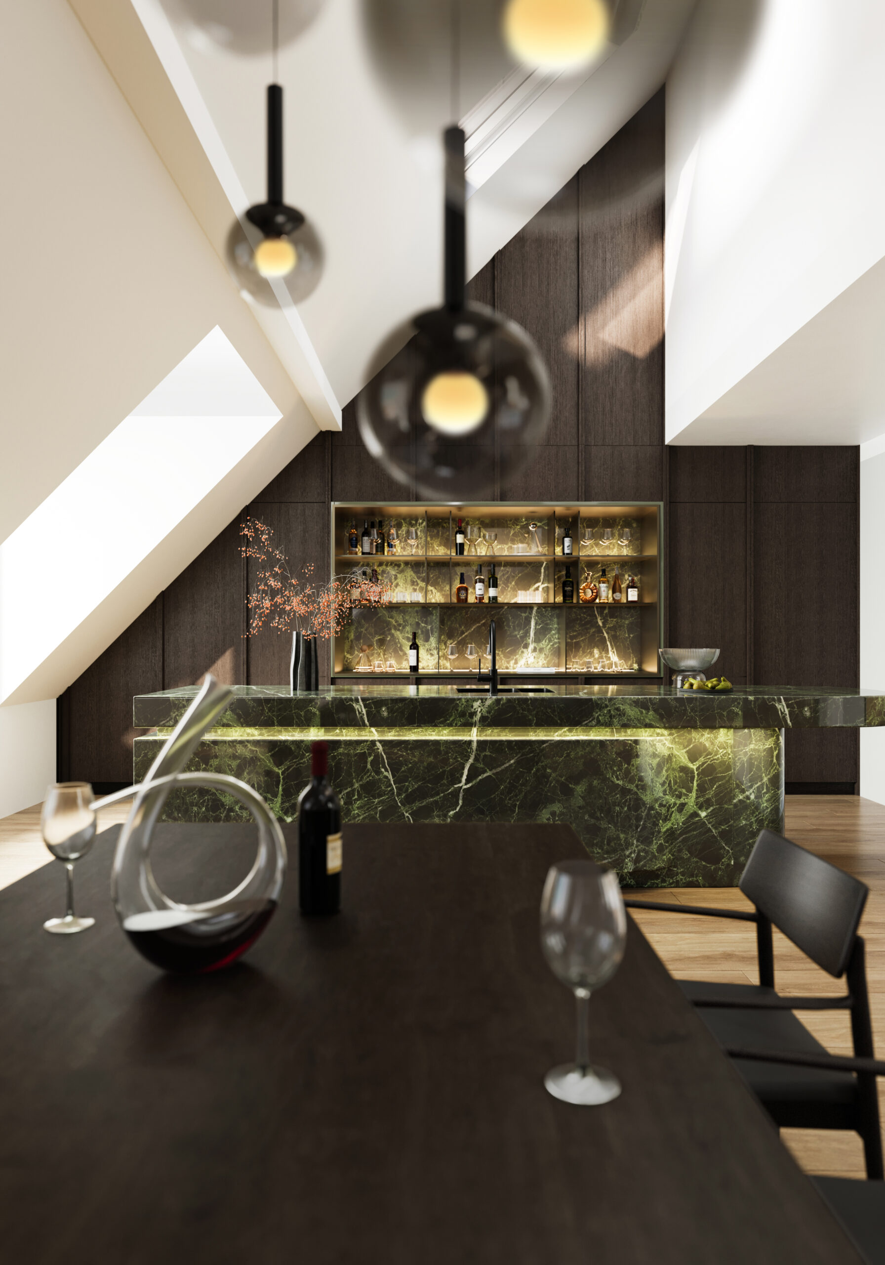 - Exklusive 3D-Visualisierungen, die Architektur, Materialität und Lichtstimmung präzise einfangen